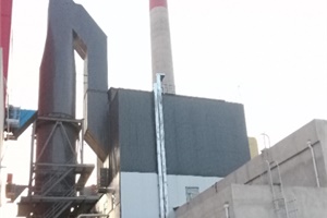 鍋爐排出的煙氣先經(jīng)過(guò)預(yù)除塵器,通過(guò)脫硫塔底部布風(fēng)裝置水平進(jìn)入塔內(nèi),折向上方經(jīng)過(guò)文丘里管段使氣流加速,托起上方吸收反應(yīng)段內(nèi)的“床層”,將一定量的消石灰和水在文丘里管段的上方加入吸收反應(yīng)段內(nèi),在脫硫塔吸收反應(yīng)段“床...